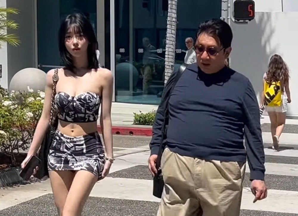 Seyeon became the center of attention after a YouTube channel posted footage of her walking with Bang Si Hyuk in Beverly Hills. Dressed in a revealing black top and micro mini skirt, Seyeon was seen strolling alongside Bang, with her sister also in attendance. The video showed Bang addressing the camera, asking, "Are they filming us?" which fueled speculation about their relationship, especially given the 28-year age difference between Seyeon and Bang, who was born in 1972.