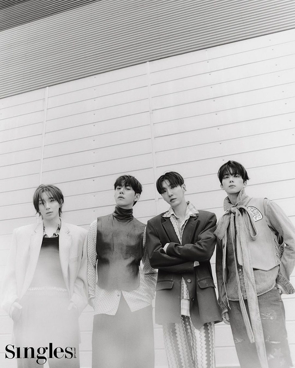 For this photoshoot, BANG&JUNG&YOO&MOON artfully melded the mature vibes of experienced veterans with a childlike playfulness. During their interview with the magazine, the members were asked what it was like to see some of their fans now working in the entertainment industry.