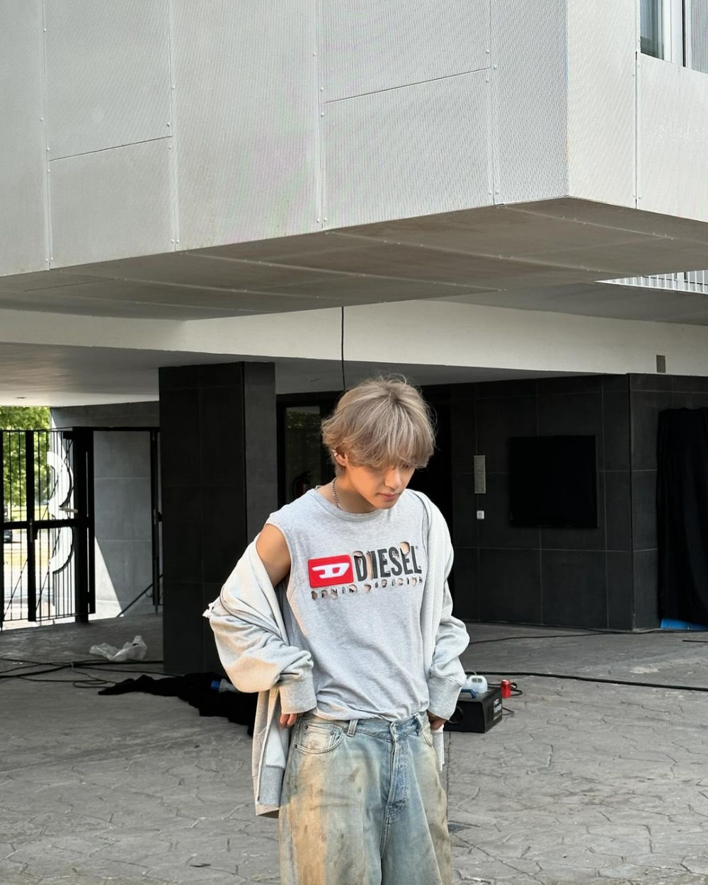 On September 12, Taehyung posted a photo dump on Instagram celebrating the 1-year anniversary of his debut album "Layover" which was released on September 8, 2023.