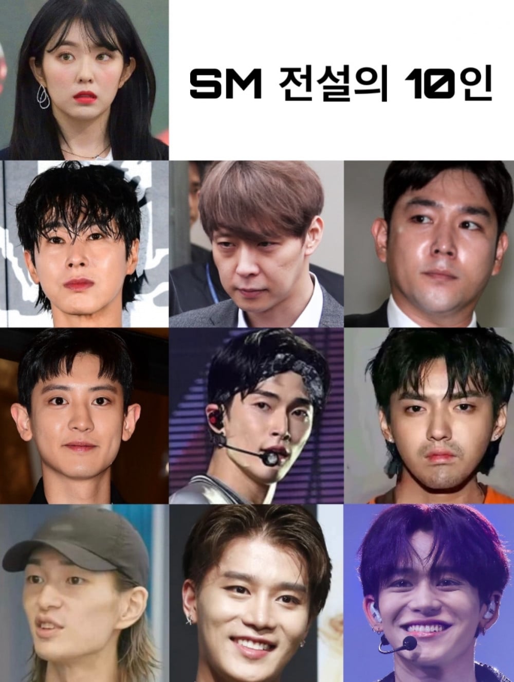 On an online forum, netizens reacted to a post that compiled photos of SM Entertainment idols who have made headlines in the past due to various controversies, ranging from illegal activities to power abuse issues and reports from netizens.
