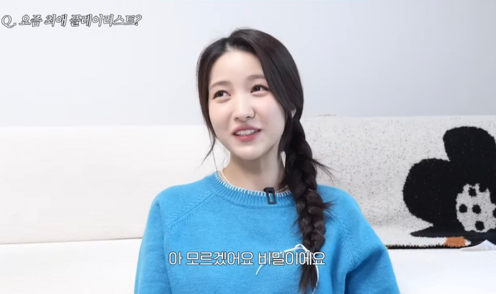 In the video, Sowon spent time answering questions sent by fans and viewers. To a question asking about her current playlist, Sowon remarked, "Wait, when will this be uploaded?"