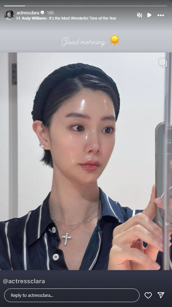 The day before, Clara had drawn attention with makeup emphasizing her full lips, sparking speculation she got plastic surgery. Seemingly aware of the rumors, she responded the next day by posting a bare-faced photo and indirectly addressing the situation with her statement about no longer wearing makeup.