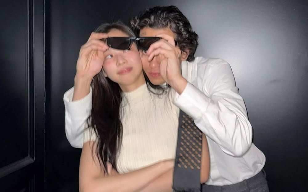 The photo features Jennie and singer-songwriter Dominic Fike in a playful moment, with Fike hugging her from behind while holding a pair of sunglasses in front of them. The vibe between the two is lighthearted and fun, teasing a close and carefree connection. Jennie shared the photo with the caption, "Call me back @dominicfike."