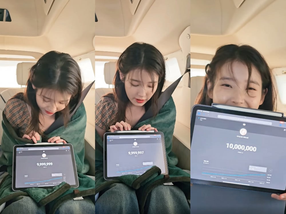 In a recent YouTube short video, IU holds up a tablet with the screen reflecting her YouTube subscriber stats in real time. As the numbers inch towards 10 million subscribers, IU gets excited. Accompanied by her manager, they celebrate the new achievement milestone with car honks and clapping.