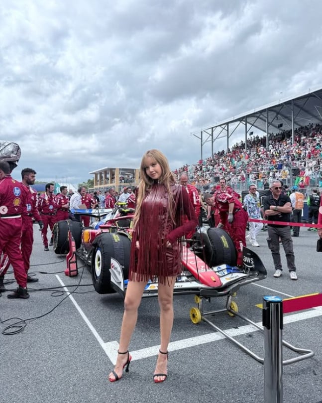In the released photos, Lisa is seen posing confidently in front of the Scuderia Ferrari team’s pit area and beside a sleek racing car. Another snapshot captures her enjoying the electric atmosphere from the grandstands, surrounded by fans.