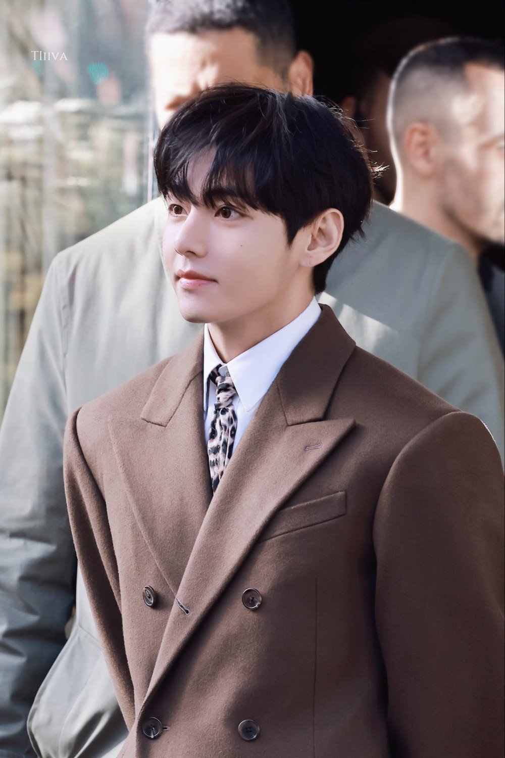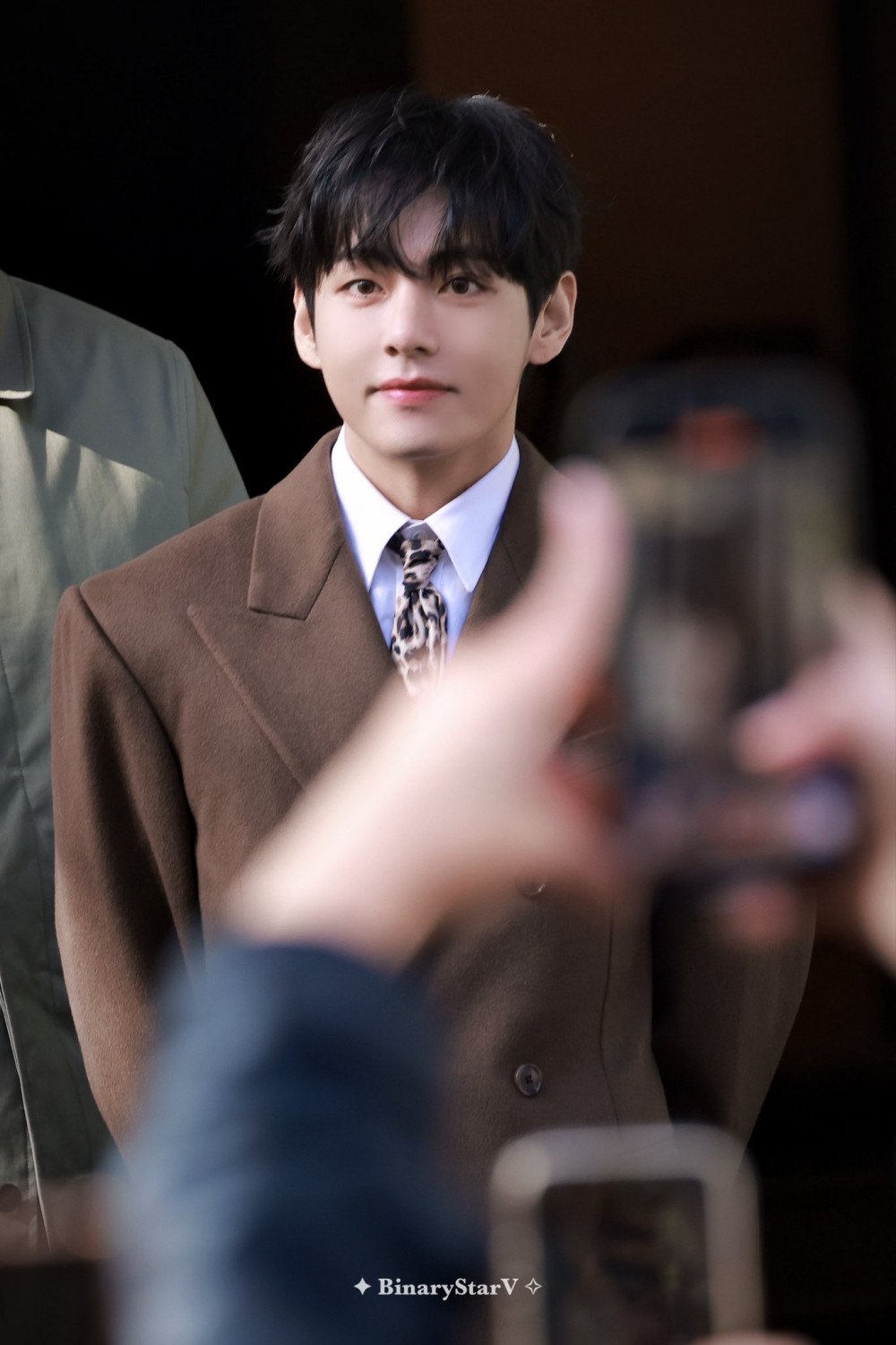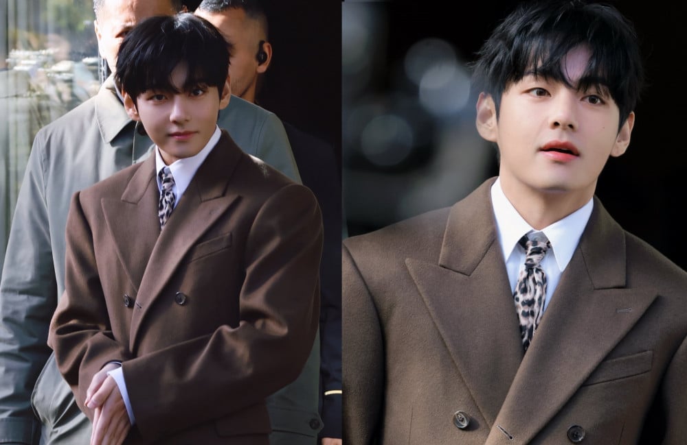 As reported, V headed to France for Paris Fashion Week for the Celine Spring/Summer 2026 show. With all eyes on the BTS member’s outfit, he did not disappoint, donning a chocolate-colored long coat paired with a crisp white shirt and an eye-catching leopard-patterned necktie.