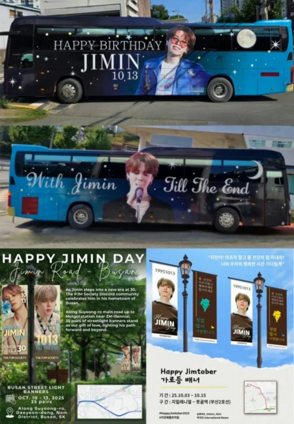 Busan itself will be transformed into 'Jimin Land' with birthday banners lining city streets and digital poster advertisements displayed in the Seomyeon subway station.