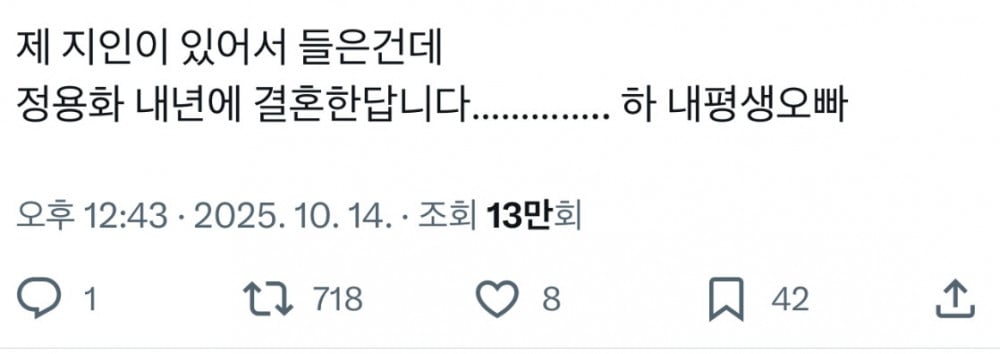 One SNS user wrote, "An acquaintance of mine heard that Jung Yonghwa is getting married next year............ Hah, my oppa for life."