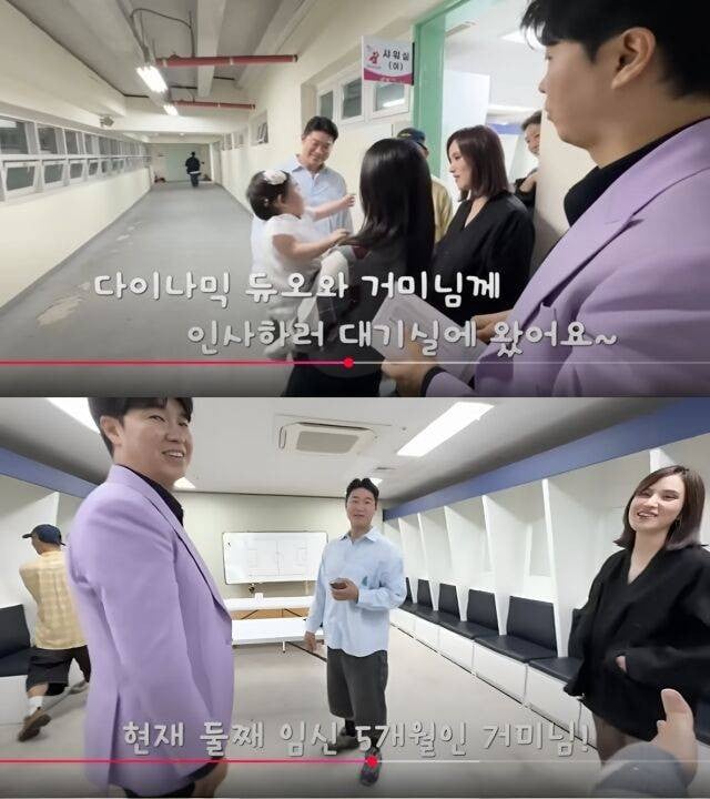 During the backstage stop, Gummy appeared with a noticeably rounded belly. She is five months pregnant with her second child with Jo Jung Suk. Seeing Jae Yi, Gummy asked, “How is the baby this calm?” and Kim Da Ye added, “Gummy is currently five months pregnant,” to which Park Soo Hong reacted, “You don’t look it at all.” Dressed in a jacket over shorts, Gummy briefly placed a hand over her abdomen as the moment was captured on camera.