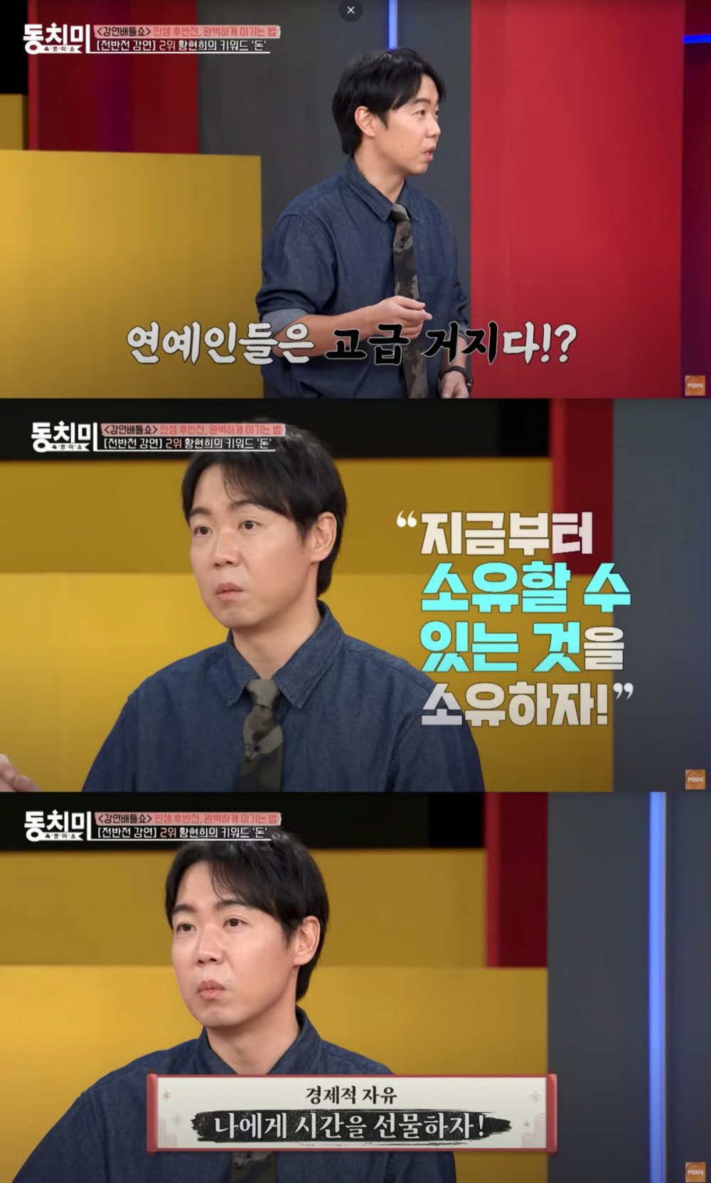 Hwang Hyun Hee also spoke about shifting focus to investing and teaching as entertainment work slowed. “I didn’t want to end as a once-familiar comedian who couldn’t perform anymore, so I studied in graduate school, worked hard at investing, wrote a book, and now I also lecture.” On MBN’s 'Dongchimi' Chuseok special the same day, he described entertainment as an unstable profession, saying, “I sometimes call entertainers ‘high-class beggars,’” and advised viewers to be wary of “one-big-shot thinking” when investing.