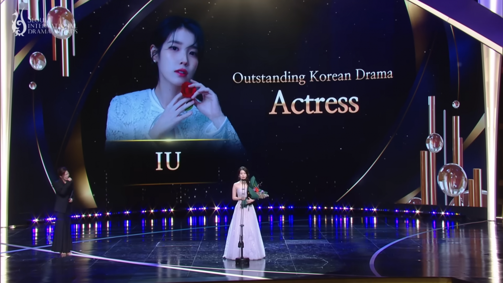IU once again proved her presence as an actress by winning the Outstanding Korean Drama Actress Award, or the Best Actress award at the Seoul International Drama Awards 2025.