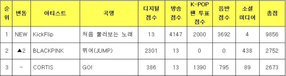 Meanwhile, BLACKPINK’s “JUMP” secured second place with 2,752 points, and CORTIS’s “GO!” followed closely in third with 2,673 points.