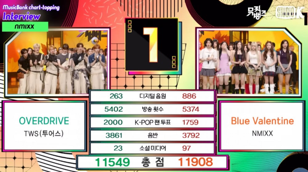NMIXX earned a total of 11,908 points, surpassing TWS’s “OVERDRIVE,” which scored 11,549 points. This marks another impressive achievement for NMIXX, continuing their strong streak on music shows.