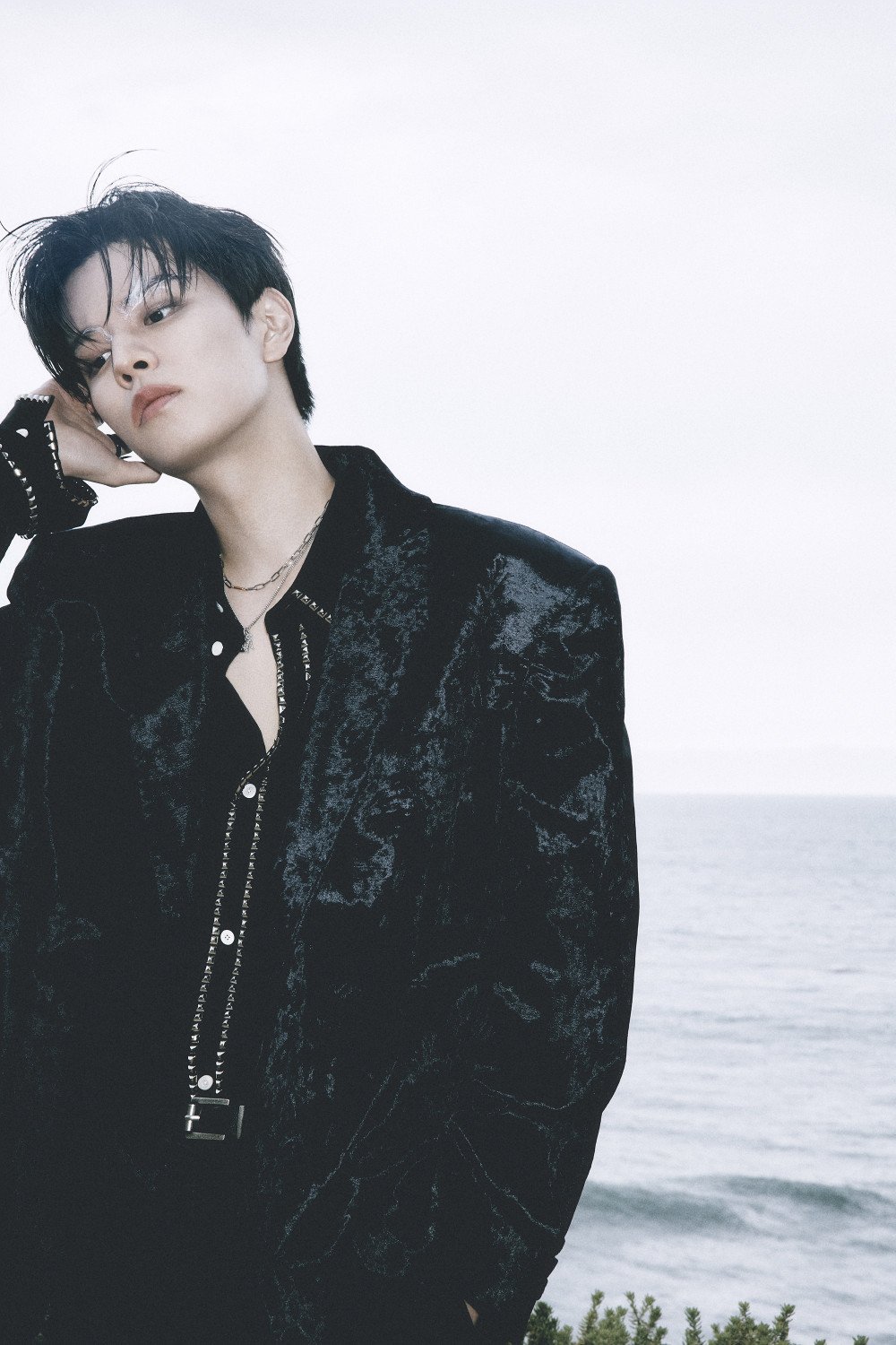 commanding presence. Dressed in elegant all-black outfits, Seungmin and