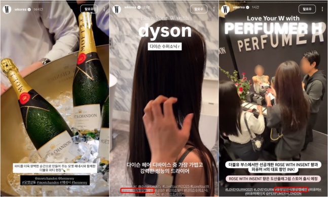 Furthermore, as 'W Korea' indicated in its numerous SNS posts, other high-end brands such as 'Dyson', the fine wine retailer 'Moët & Chandon', and perfume brand 'H' contributed goods and merchandise for the dinner and party, including the endless supply of champagne courtesy of 'Moët & Chandon'.