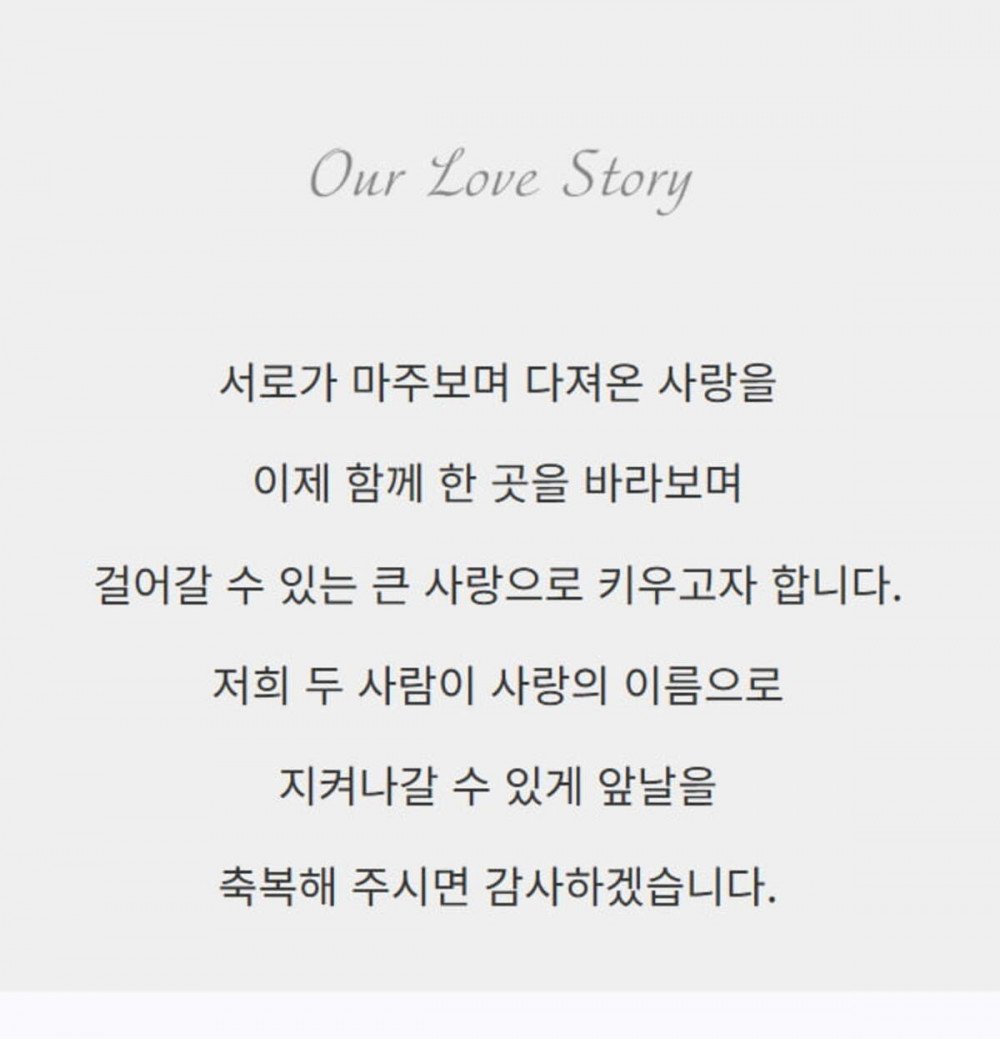 On October 15, TenAsia exclusively obtained a copy of the couple’s wedding invitation. The message inside reads: “The love we have nurtured by facing each other will now grow into a greater love as we walk together, looking in the same direction. We would be grateful for your blessings as we begin this journey under the name of love.”