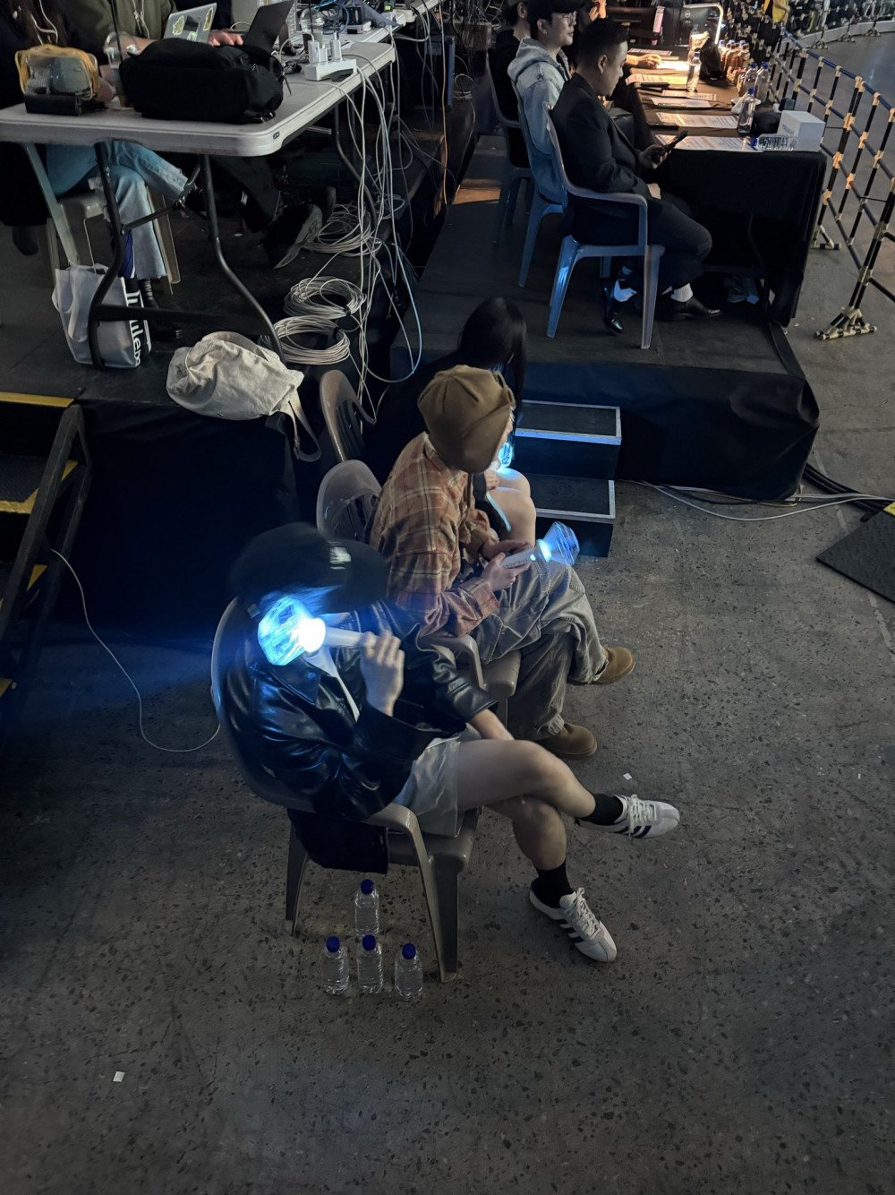 WINNER garner attention for sitting in plastic chairs set up in the aisles at TREASURE's concert