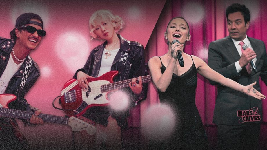 The pop star made a theatrical entrance with a medley of iconic duets, performing alongside Jimmy Fallon. She treated her fans to a few bars of Wicked's classic "For Good," before launching into renditions of Marvin Gaye and Tammi Terrell's "Ain't No Mountain High Enough," Brandy and Monica's "The Boy Is Mine," and Lady Gaga and Bradley Cooper's "Shallow." But the moment that went viral and generated the most hype, especially among K-pop fans, was when Ariana Grande duetted with Jimmy Fallon on "APT" by three-time Grammy-nominated artist Rosé, featuring the talented Bruno Mars.