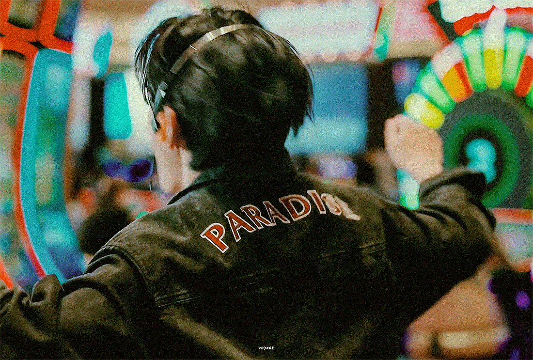 To commemorate the collaboration, Paradise City released two short films. In the video below, V appears as a sanitary worker, sweeping the grounds of the hotel and casino while listening to a cassette player.