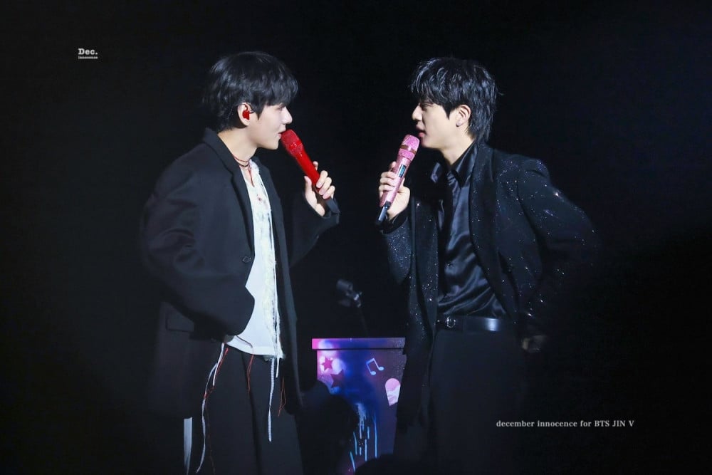 Later, Taehyung joined Jin and Jimin for a nostalgic set of BTS hits, including “IDOL,” “My Universe,” and “Spring Day.”