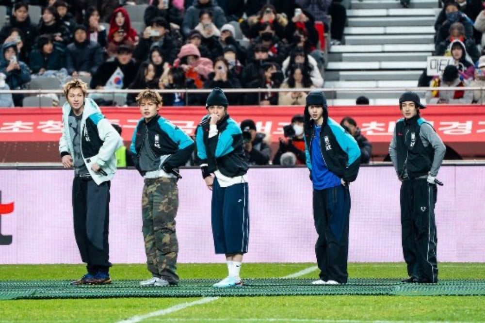 The group delivered an overwhelming performance that left a strong impression. As it was the national team’s final A-match of the year, anticipation was especially high. The five members immediately drew attention as they appeared in customized outfits inspired by the anthem jackets worn by the national team players.