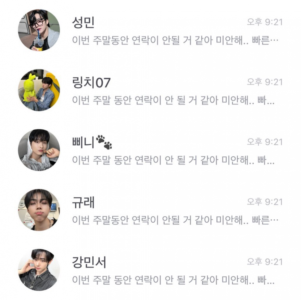Shortly afterward, the members collectively posted an identical message, saying, “I’m sorry, but it seems I won’t be able to contact you this weekend... I’ll do my best to update you as soon as possible. Thank you, and I’m sorry.” Fans quickly noticed that nearly all members had uploaded the exact same text, prompting suspicions that the posts were not written by the idols themselves.