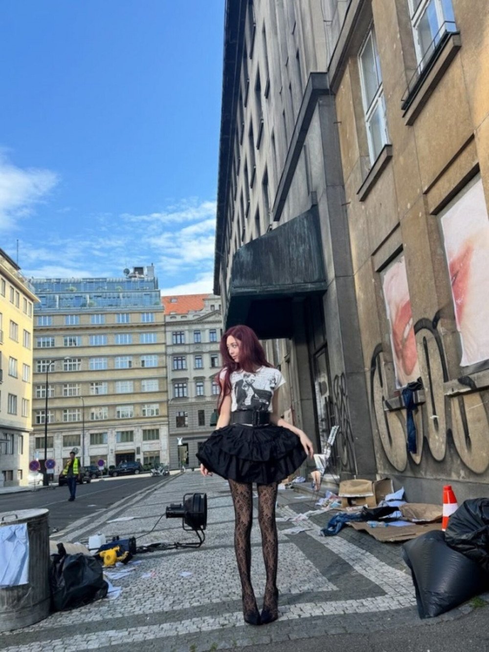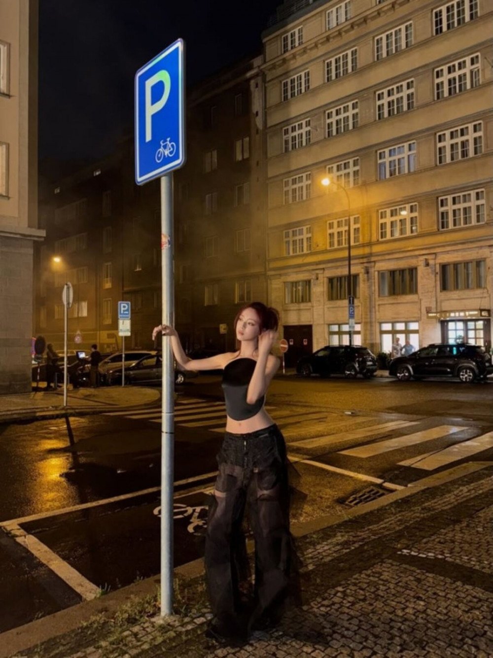 In the outdoor shots that followed, Yuna completed a unique silhouette with lace-patterned stockings and a ruffled skirt. Even in low-angle photos, her striking figure and idol presence stood out. Nighttime street shots added a different mood, from a funky vibe while posing on the road to cinematic, movie-like scenes against the urban backdrop, leaving a lasting impression.