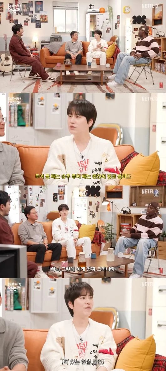 Addressing the arrangement, Kyuhyun quipped, "Pink blood still flows within me," invoking SM Entertainment’s signature color, then added, "Of course, yellow blood flows too," in a nod to Antenna’s logo. He clarified that his appearance on ‘Three Idiots in Kenya’ is part of his individual schedule under Antenna, saying, "It seems to be divided depending on the time. Today is Antenna." He emphasized his dual allegiance repeatedly: "I don’t know. I love them all," and "When I’m on tour, I am completely Super Junior."