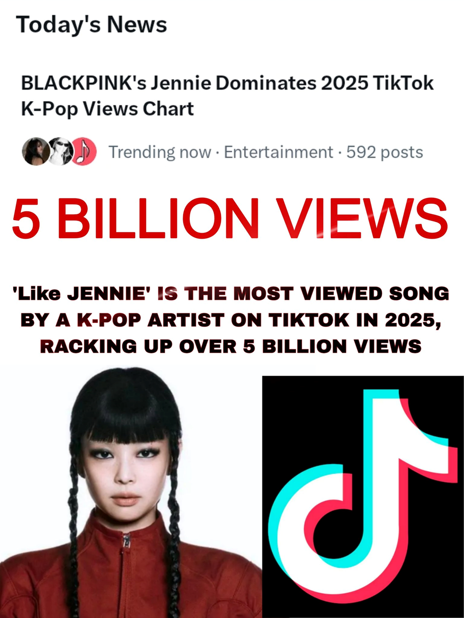 Now, her iconic, empowering, and groundbreaking song "Like Jennie" has achieved another incredible milestone, becoming the "Most-Viewed Song by a Kpop Act on TikTok in 2025 with over 5 Billion views".