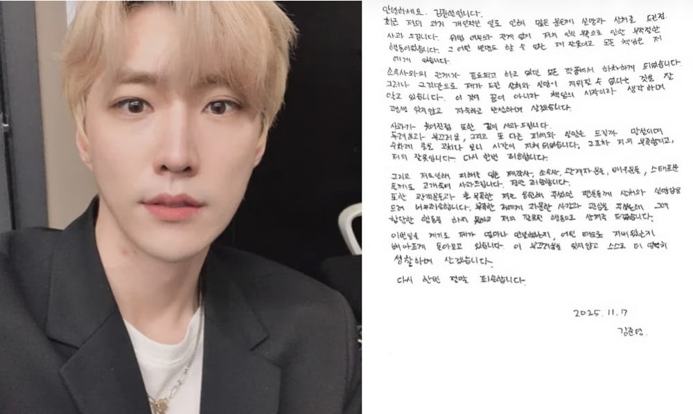 On November 7, Kim Jun Young posted a handwritten apology on his Instagram, stating, "I sincerely apologize for disappointing and hurting many people due to my personal actions in the past. Regardless of legality, my inappropriate behavior stemmed from a lack of awareness. There is no excuse for my actions, and I take full responsibility."