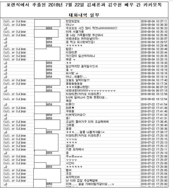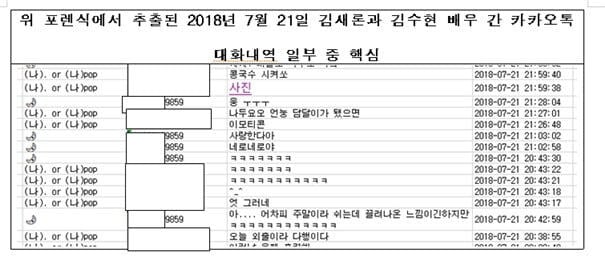 The legal representative for the side of the late Kim Sae Ron's family then asserted, "There is further evidence that Kim Soo Hyun dated Kim Sae Ron while she was still a minor. Below are KakaoTalk messages exchanged between the two on July 21 and July 22, 2018." The photo provided by the attorney (below) contained transcribed conversations allegedly between Kim Sae Ron and Kim Soo Hyun, including words and phrases like "Saero Naero" and "I love you".
