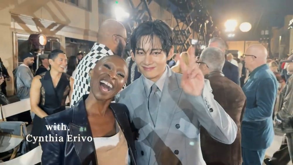 The video also follows V on the day of Vogue World: Hollywood, where he is seen interacting warmly with fellow attendees. He meets Cynthia Erivo, who was seated beside him during the event, and reunites with Lizzo, a long-time friend, showcasing his natural ease in both professional and personal settings.