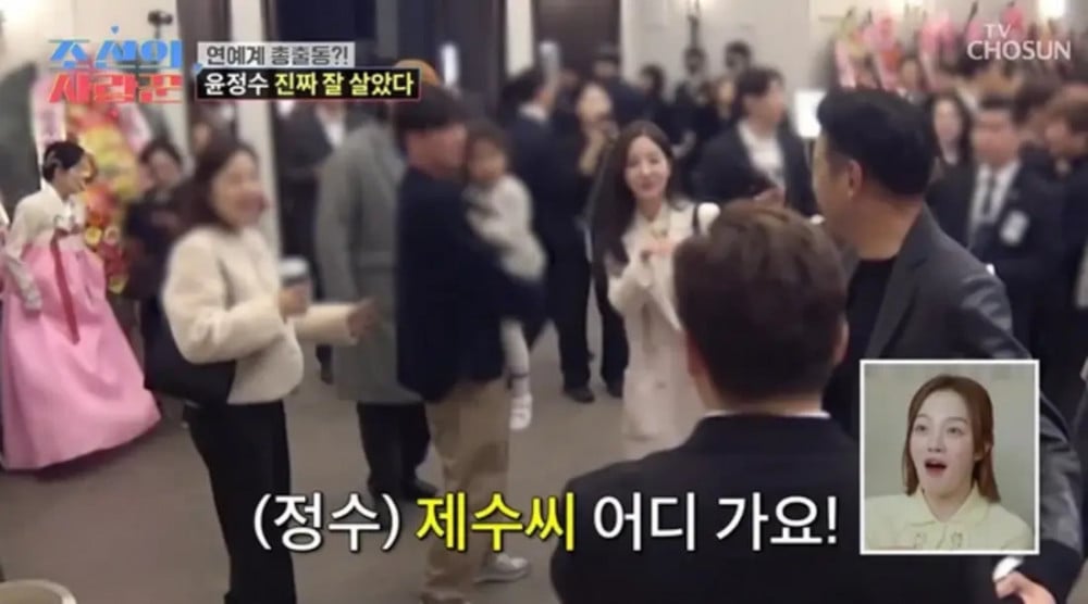 The couple attended the wedding of comedian Yoon Jung Soo and broadcaster and Pilates instructor Won Jin Seo (also known as Won Ja Hyun) as guests. Ryu warmly congratulated Yoon, while his wife initially hesitated shyly before stepping forward to greet him after being called over.