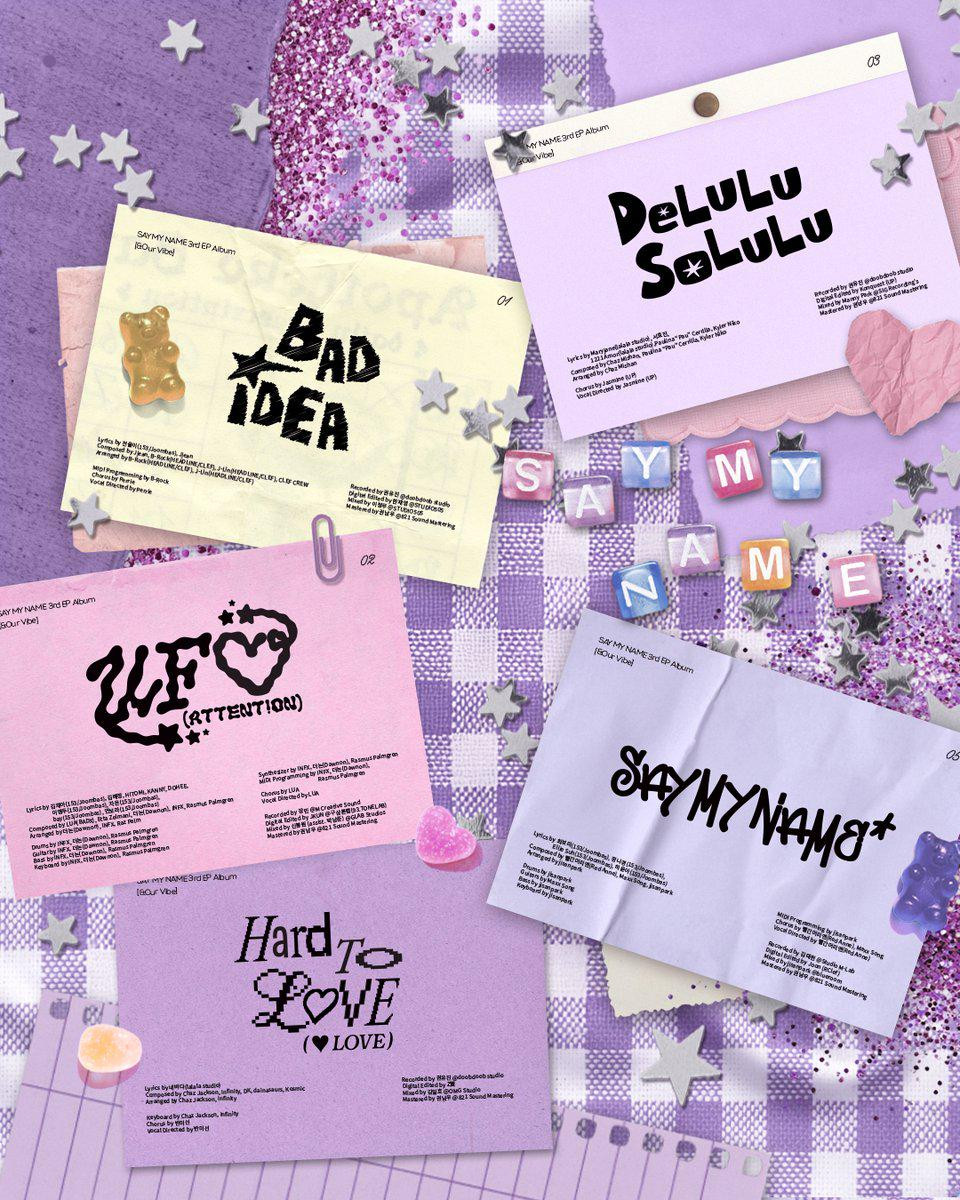 SAY MY NAME continued their comeback preparations with a tracklist teaser introducing their new songs. According to the tracklist dropped on December 17 at midnight KST, the new EP includes a total of five tracks - "Bad Idea," "UFO," "Delulu Solulu," "Hard to Love," and "SAY MY NAME."