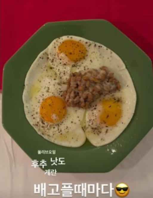 Now, Go Hyun Jung has just revealed the special meal that she eats to maintain her physique. She posted a photo, with the simple caption: "Whenever I'm hungry, I eat this. Eggs, natto, olive oil, and pepper."
