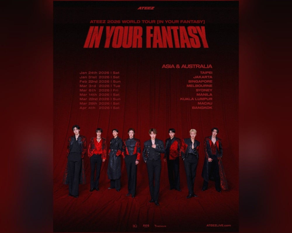ATEEZ officially commenced the Asia and Australia leg of their 2026 World Tour 'IN YOUR FANTASY' with a solo performance in Taipei on January 24, 2026. This tour initially kicked off in July 2025 at the Incheon Inspire Arena and has since traveled through 12 major North American cities—including Atlanta, New York, Baltimore, Nashville, Orlando, Chicago, Tacoma, San Jose, Los Angeles, Glendale, Arlington, and Mexico City—before visiting three cities in Japan: Saitama, Nagoya, and Kobe. Driven by enthusiastic fan support, the group is now inviting international audiences back into their "fantasy world" for the new year.