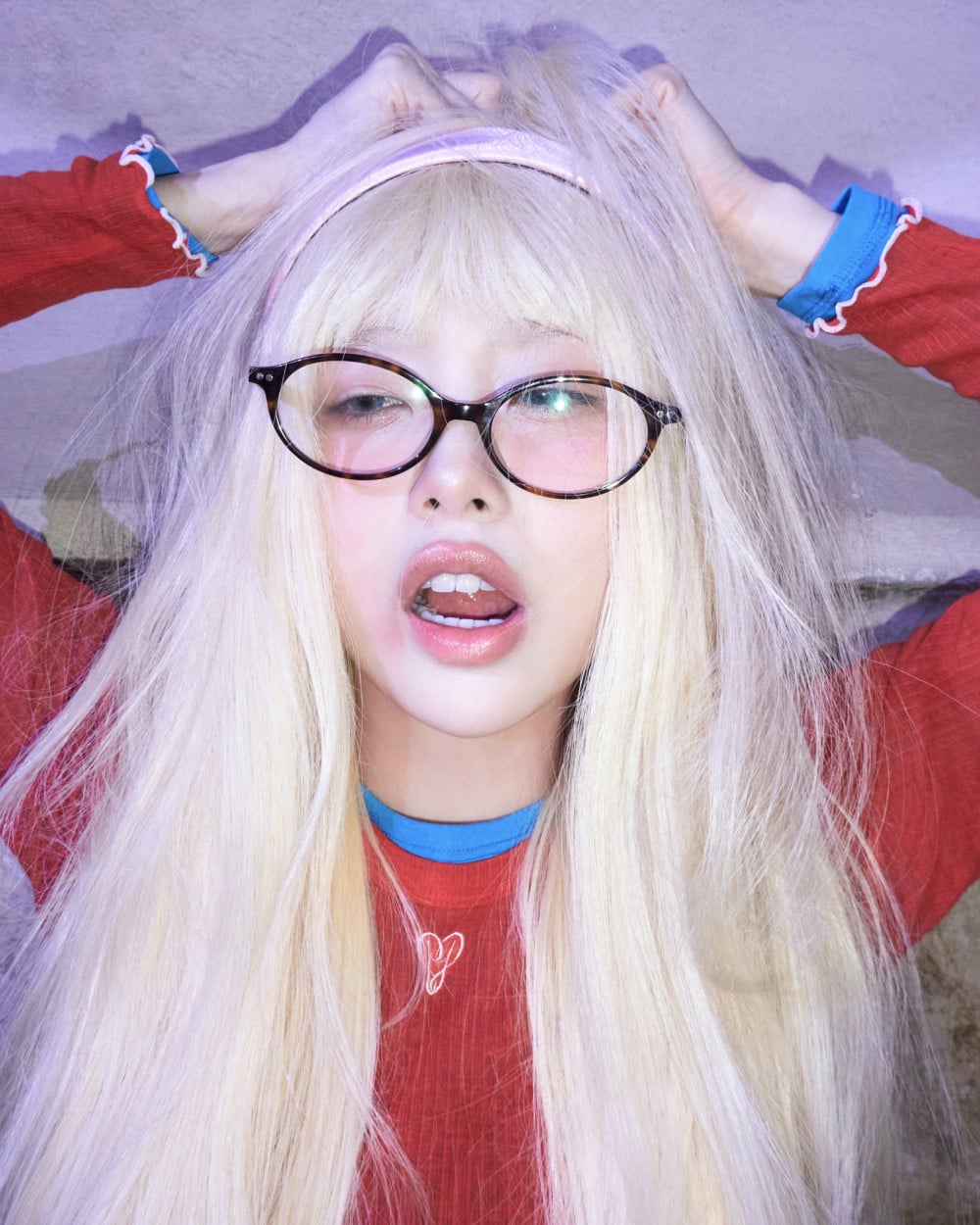 On January 2 at midnight KST, the singer dropped photos showcasing her quirky charm in platinum blonde locks. Chuu is seen wearing a mismatched outfit, including mismatched socks. Her playful poses add to the unique vibe of the teaser.