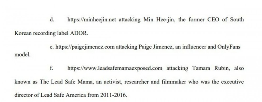According to Min’s representatives, the existence of a website suspected of targeting her, titled 'minheejin. net,' was revealed during the discovery process in the U.S. lawsuit. Umhoefer reportedly outlined how what he described as “aggressive PR” campaigns typically operate, citing methods such as creating fake websites aimed at specific individuals, distributing maliciously edited videos using past interviews, and artificially amplifying negative sentiment through bots and other technical tools.