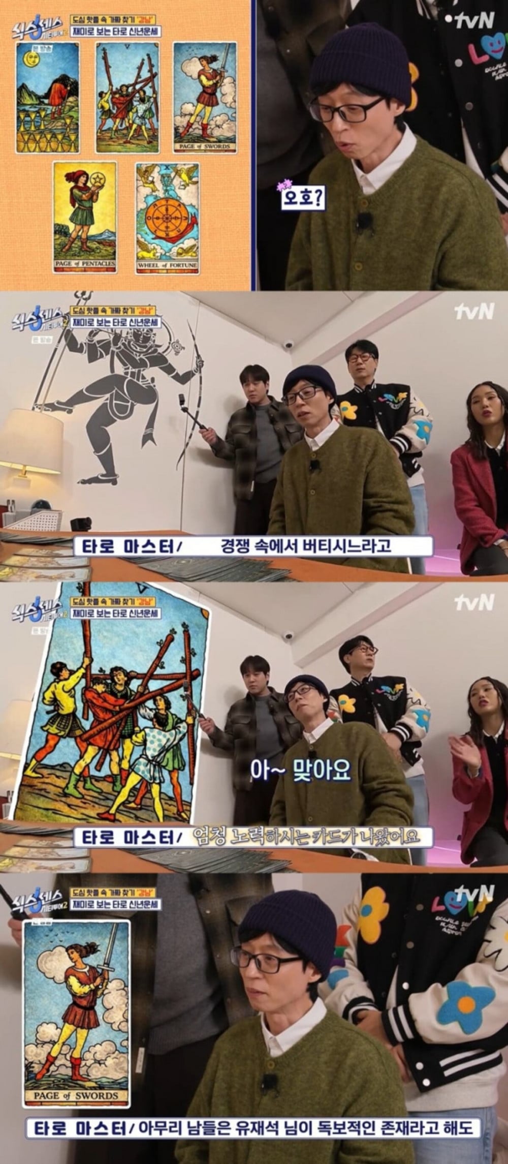 During the episode, Yoo Jae Suk received a tarot reading focused on his wealth and career prospects. After examining the cards Yoo selected, the tarot master explained that they reflected someone who continuously strives to endure intense competition. According to the master, even if others view him as unrivaled, Yoo Jae Suk constantly reflects on “what my work truly is” while navigating competitive environments.
