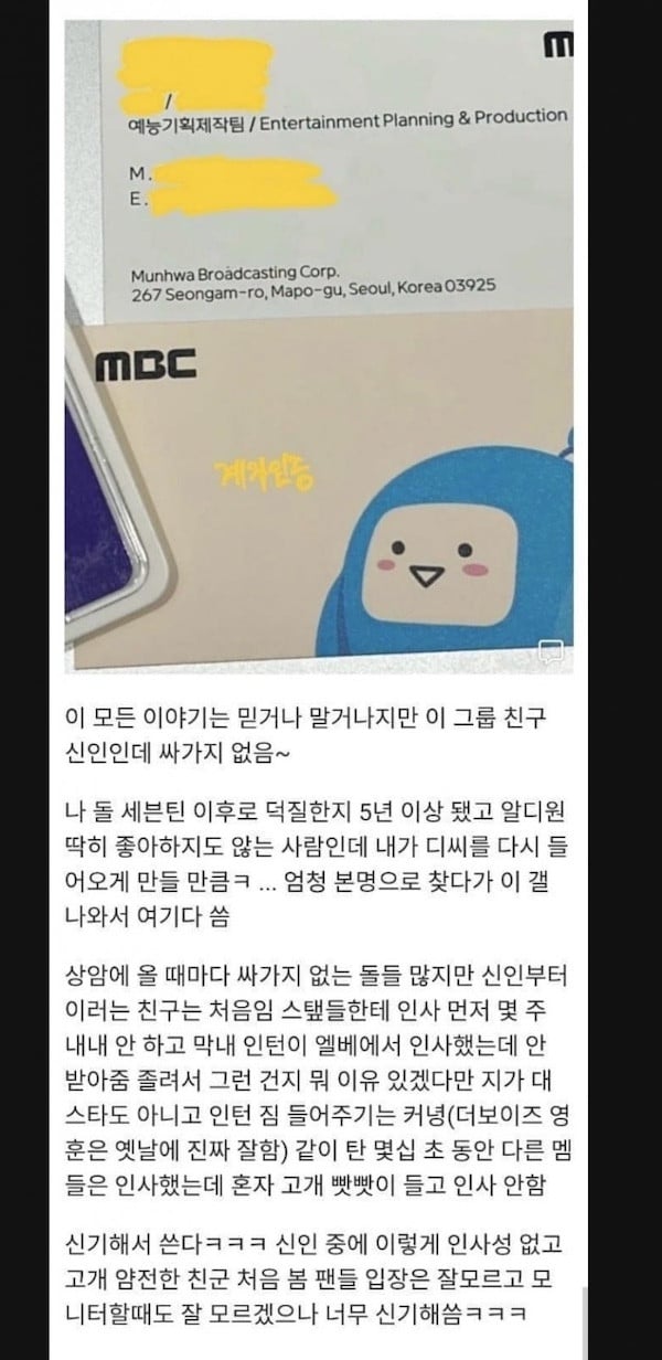 Still, another online user claiming to be an employee in the Entertainment Planning and Production division at MBC said,