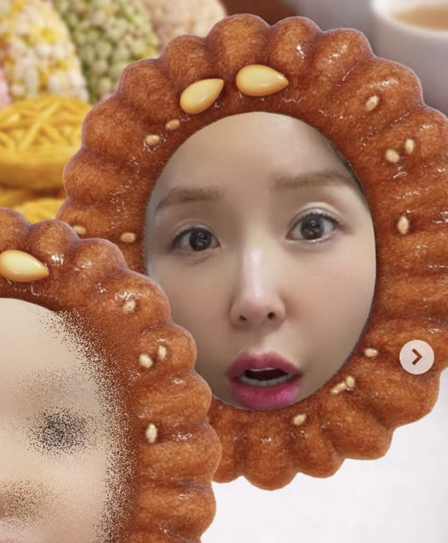On Lunar New Year’s Day, Shinji spent an enjoyable time playing with her adorable niece and took several photos together. She later uploaded a picture in which her face was humorously edited onto a piece of yakgwa, a traditional Korean honey cookie. Although cute, the extreme close up of her face gave the image a rather bizarre and comical feel, drawing laughter from fans.