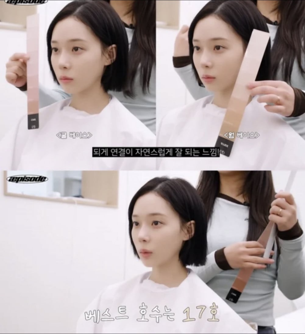 As the full diagnosis began, a skin tone analysis followed. The expert explained, “A warm base suits you naturally,” and added, “Since your skin tone is bright, when using cushion foundation, I recommend a lower shade like No.17 rather than No.20.”