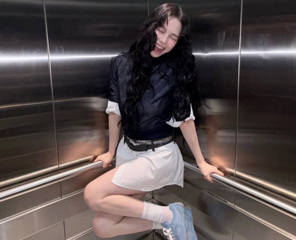 Her long black wavy hair further highlighted her small face and striking features. From playful expressions inside the elevator to a soft and refreshing vibe on the sunlit terrace, Karina effortlessly showcased her versatile charm.