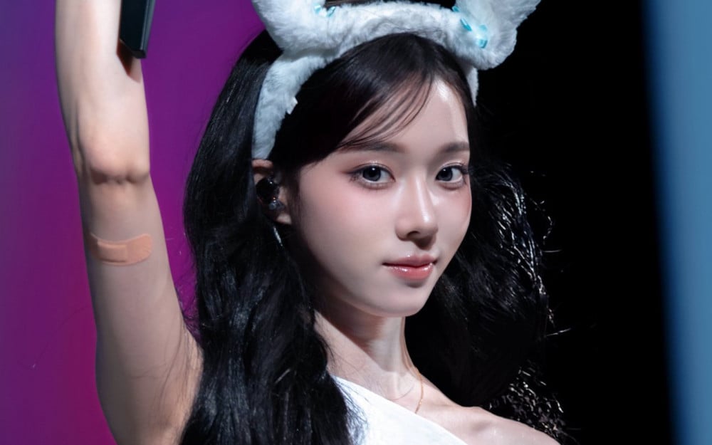 Recently, a netizen brought to attention Winter's latest photo from aespa's fan meeting. In the photo, Winter is seen raising her right hand over her head with a Band-Aid over her dog tattoo.