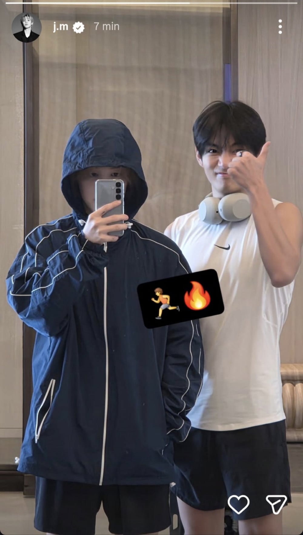 He posted selfies while working out, including running sessions with fellow member V, showing that he is maintaining his health and stamina through consistent exercise.