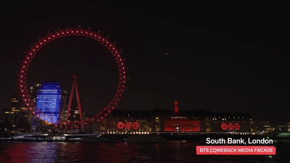 London’s South Bank and New York’s Brooklyn Bridge also joined in celebrating BTS’s return.