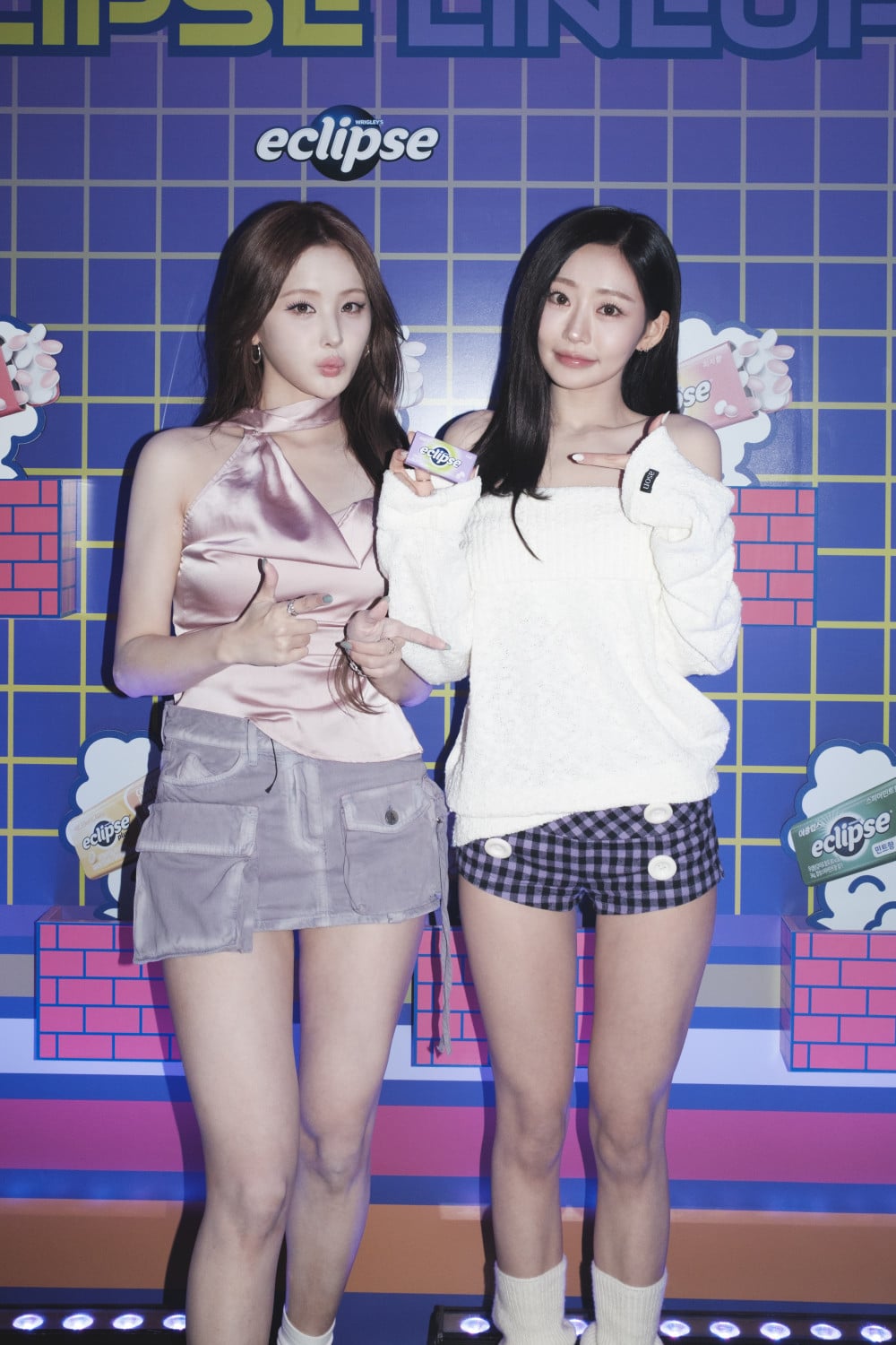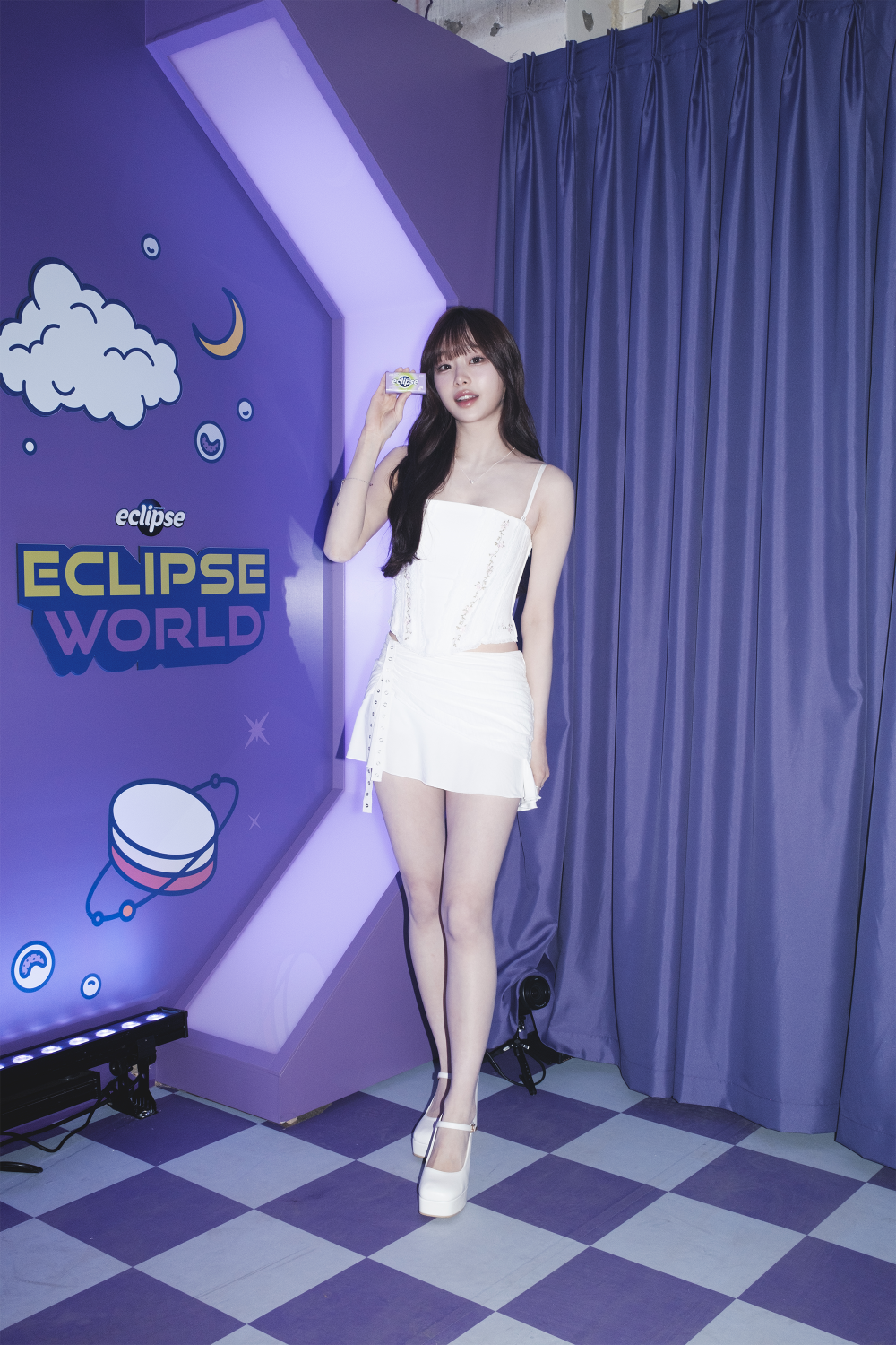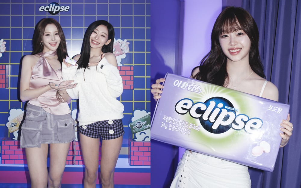 At the launch event on March 12, KISS OF LIFE members Julie and Belle and singer Chuu attended a photo wall event held in Seongsu, Seoul, posing for photos to celebrate the debut of the new grape-flavored Eclipse product in Korea.