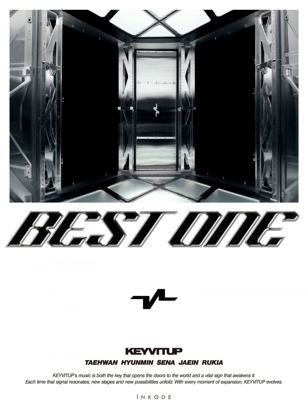 The logo image features a striking metallic silver door marked with the group’s name, sparking curiosity about the concept and sound KEYVITUP will unveil for the first time through the track.