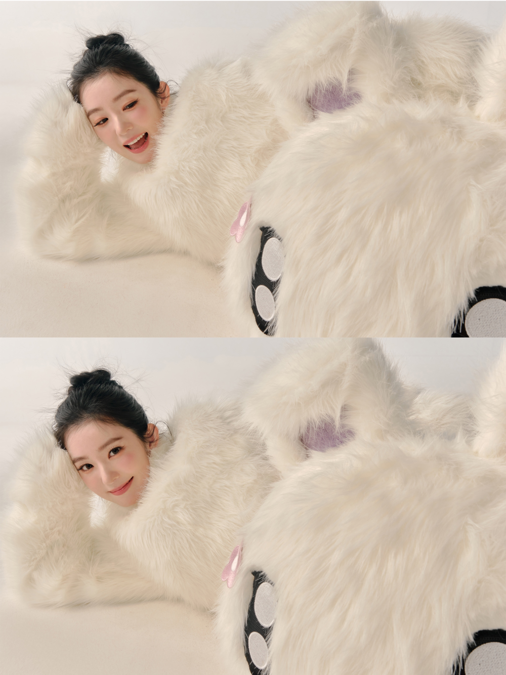 The legendary idol has just dropped a new set of concept photos for her first full album 'Biggest Fan,' unveiling a charming and sweet image. Posing with a giant rabbit, the whimsical new photos draw attention to Irene's radiant beauty and cheerful attitude.
