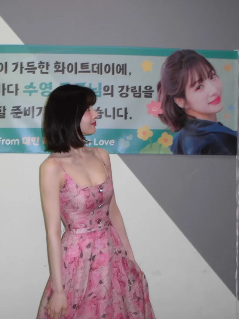 Dressed in a pink one piece outfit, Joy exuded a soft and graceful aura, earning the nickname “human cherry blossom” from fans. Her slender silhouette and elegant visuals drew admiration, with many praising her Barbie like proportions.